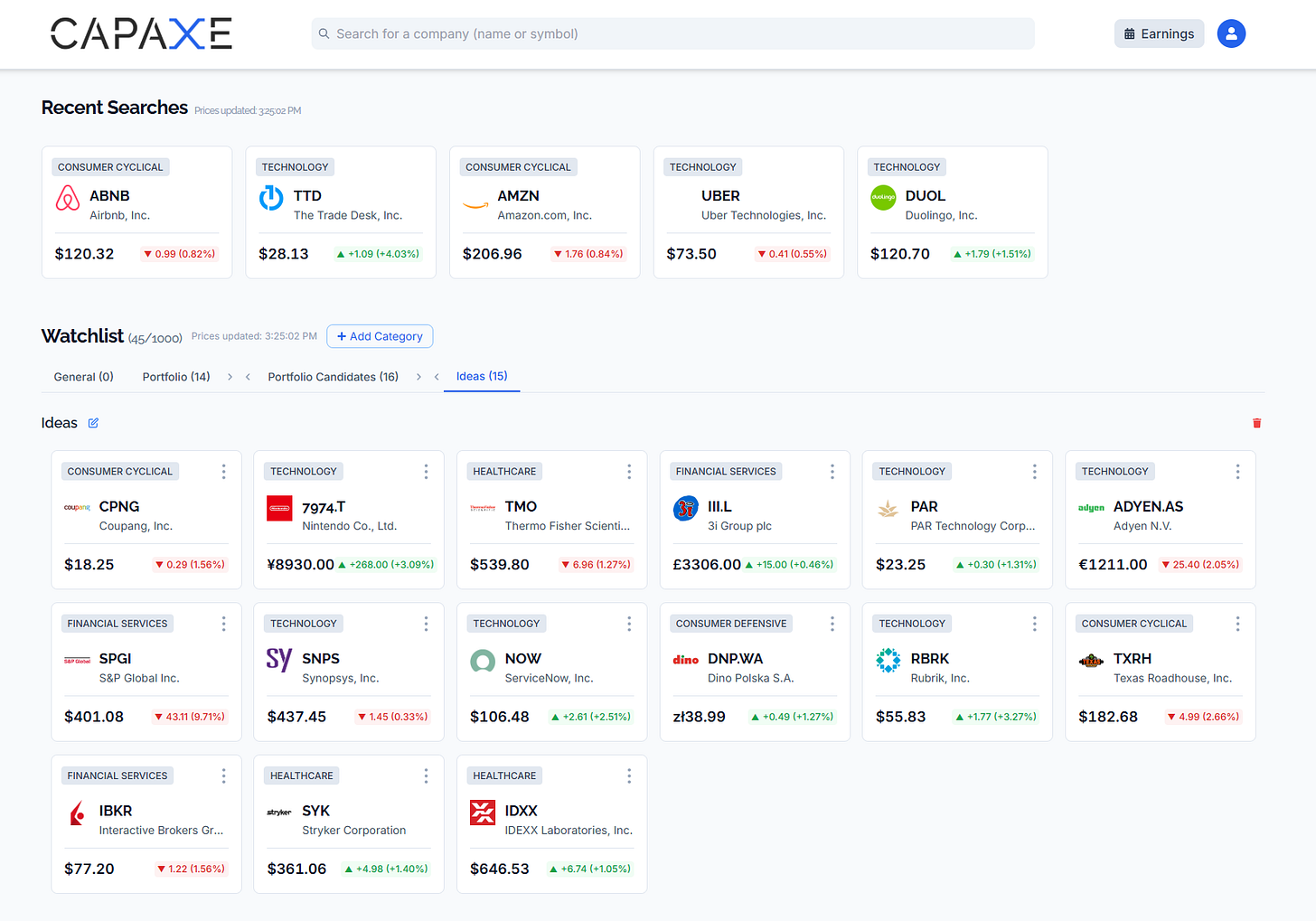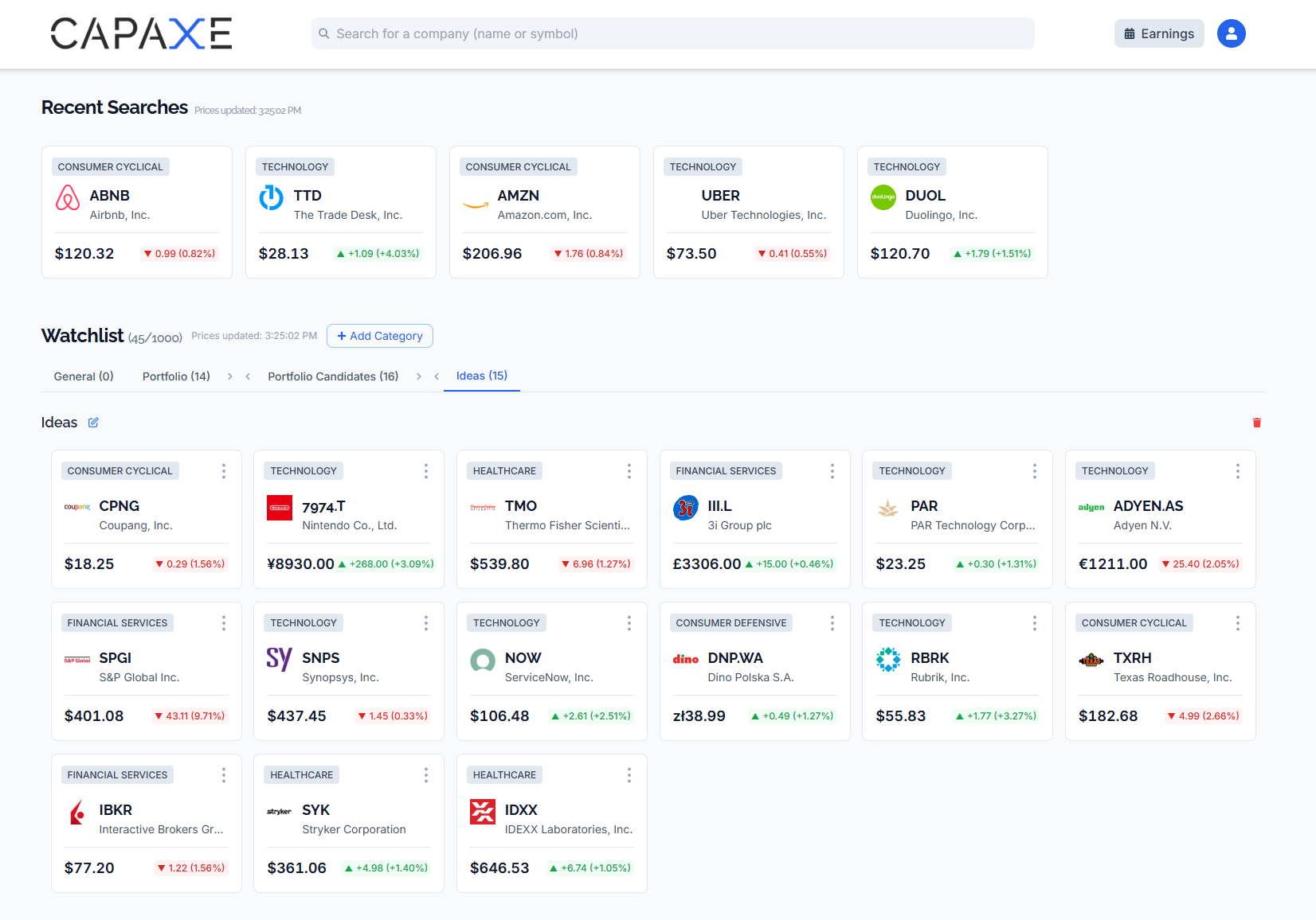 This is built for investors who want to take their process seriously. If you are trying to build conviction, track your theses, and think in years instead of days, Capaxe is for you.