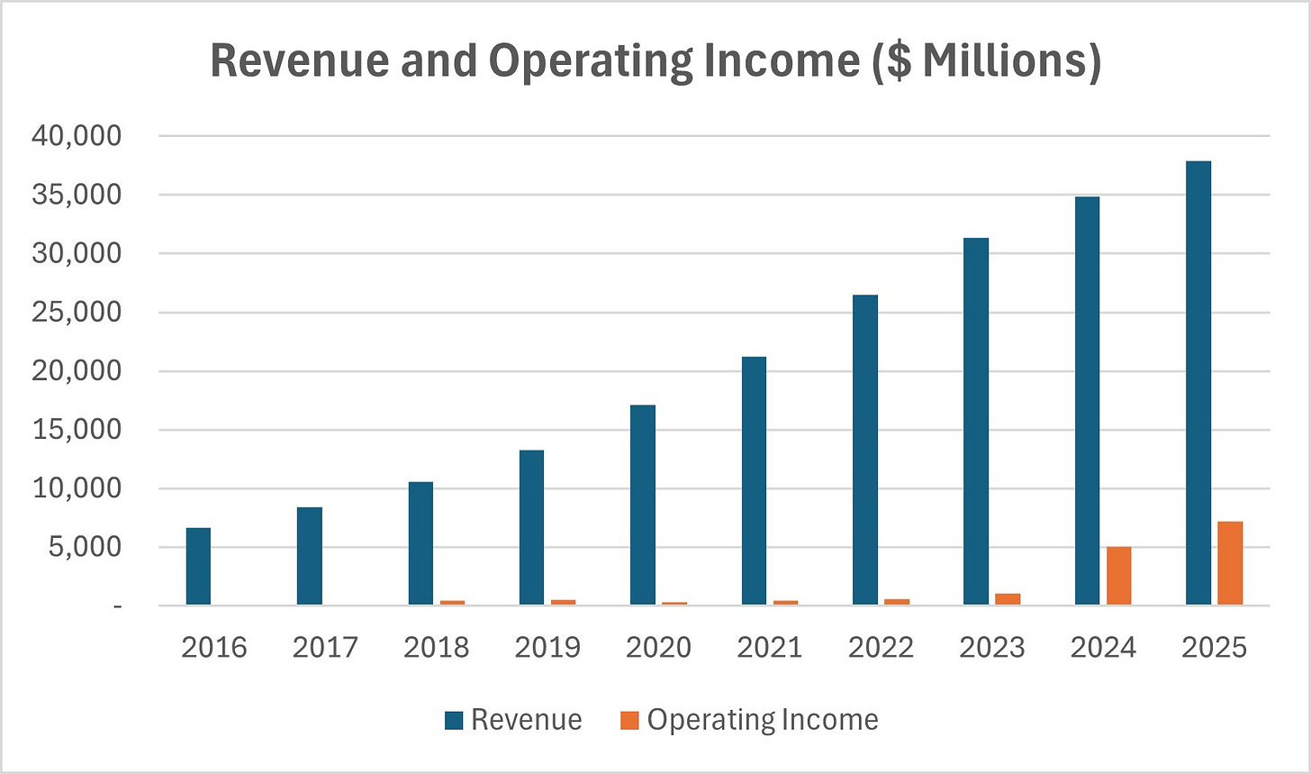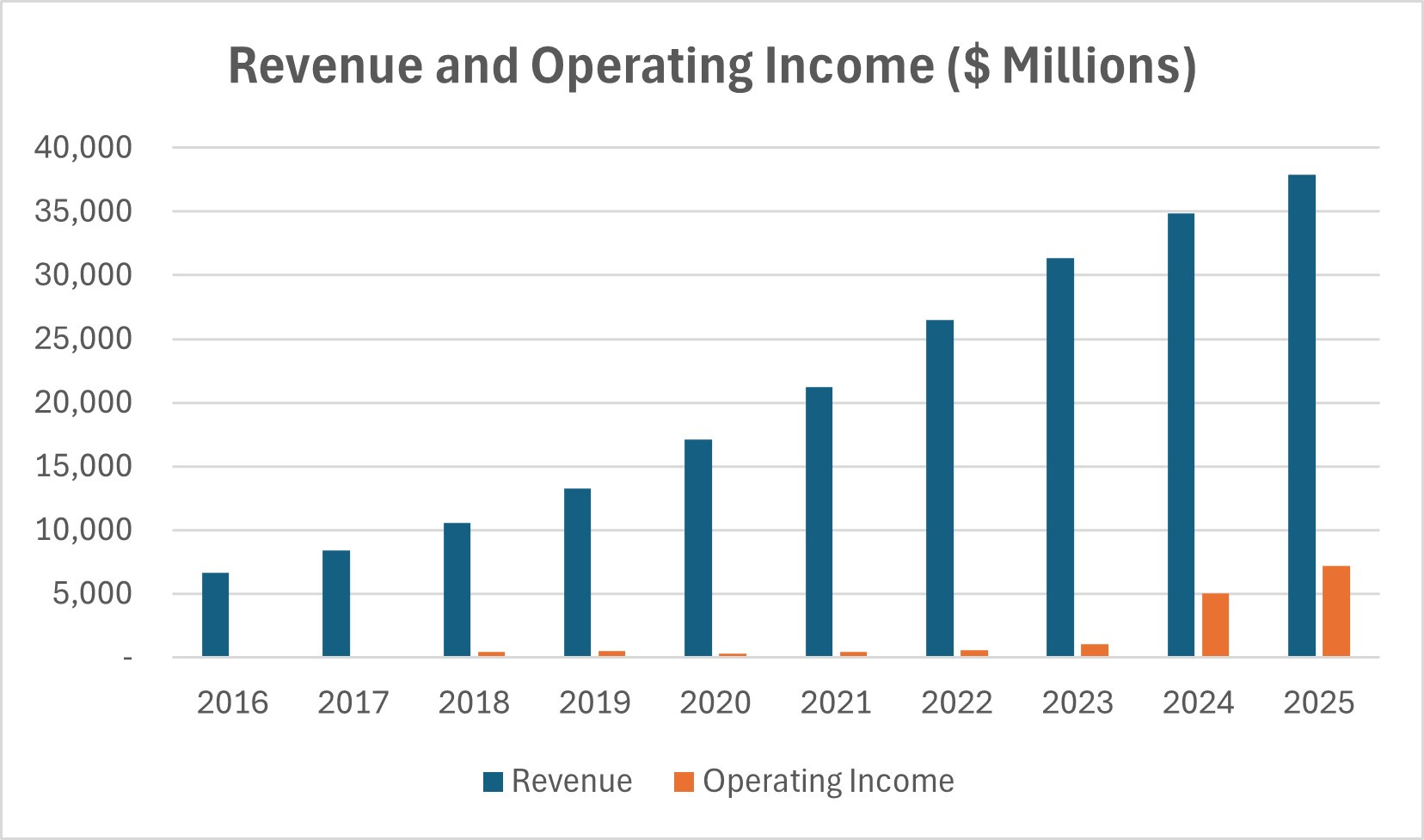 Taking it a step further, let’s assume no significant future acquisitions. Based on company guidance, FY2026 operating cash flow should be around $14.6 billion. Assuming capex of $800 million (compared to $658 million in FY2025 and $736 million in FY2024), free cash flow would be about $13.8 billion—equating to a 5% free cash flow yield. To justify today’s price, free cash flow would need to grow 6% annually over the next 20 years or 9% over the next 10. That doesn’t seem excessive.